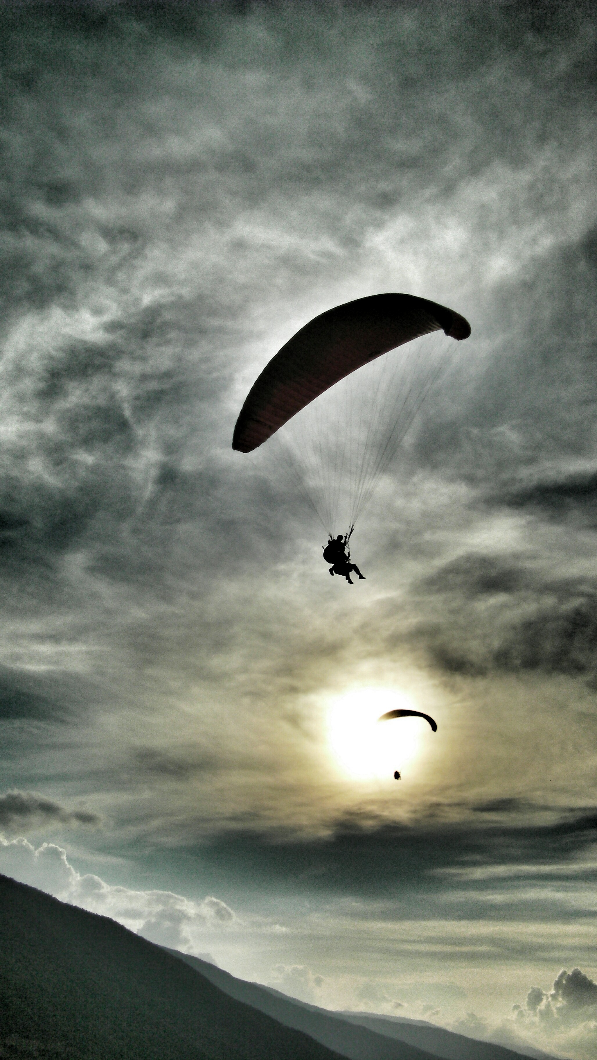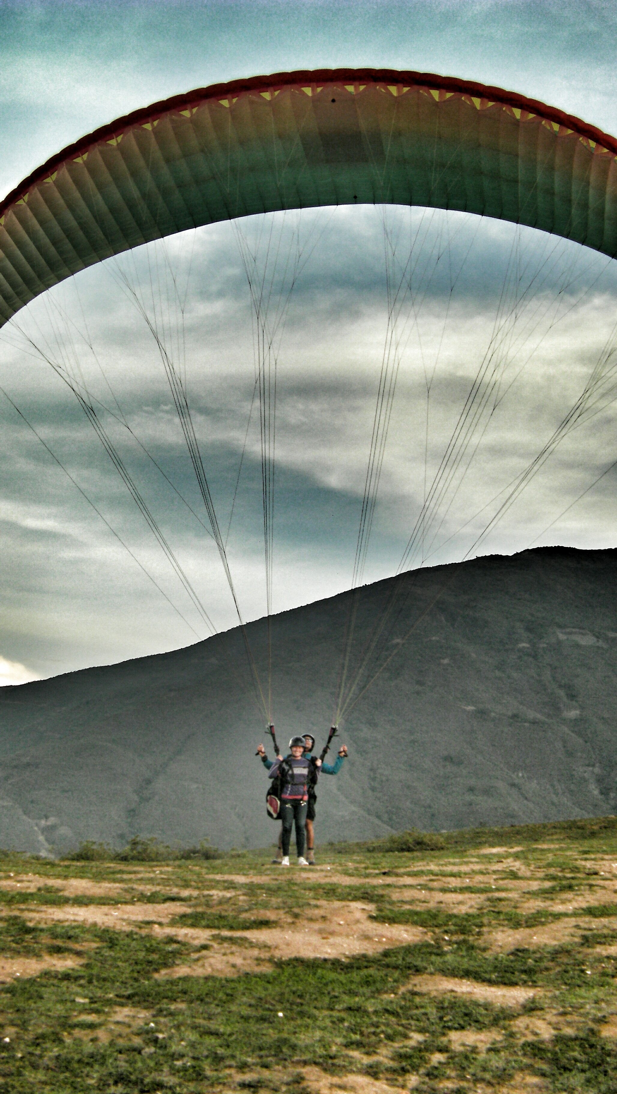 At around 10 metres from the ground we pulled ourselves out of our harnesses and into a standing position once again. As our legs dangled below us I started rapidly analysing fields to find a soft and flat landing spot. I’d underestimated the pilot, and with gymnastic grace our feet met the ground, we took up a steady jog and then stopped as our wing flew over our heads.