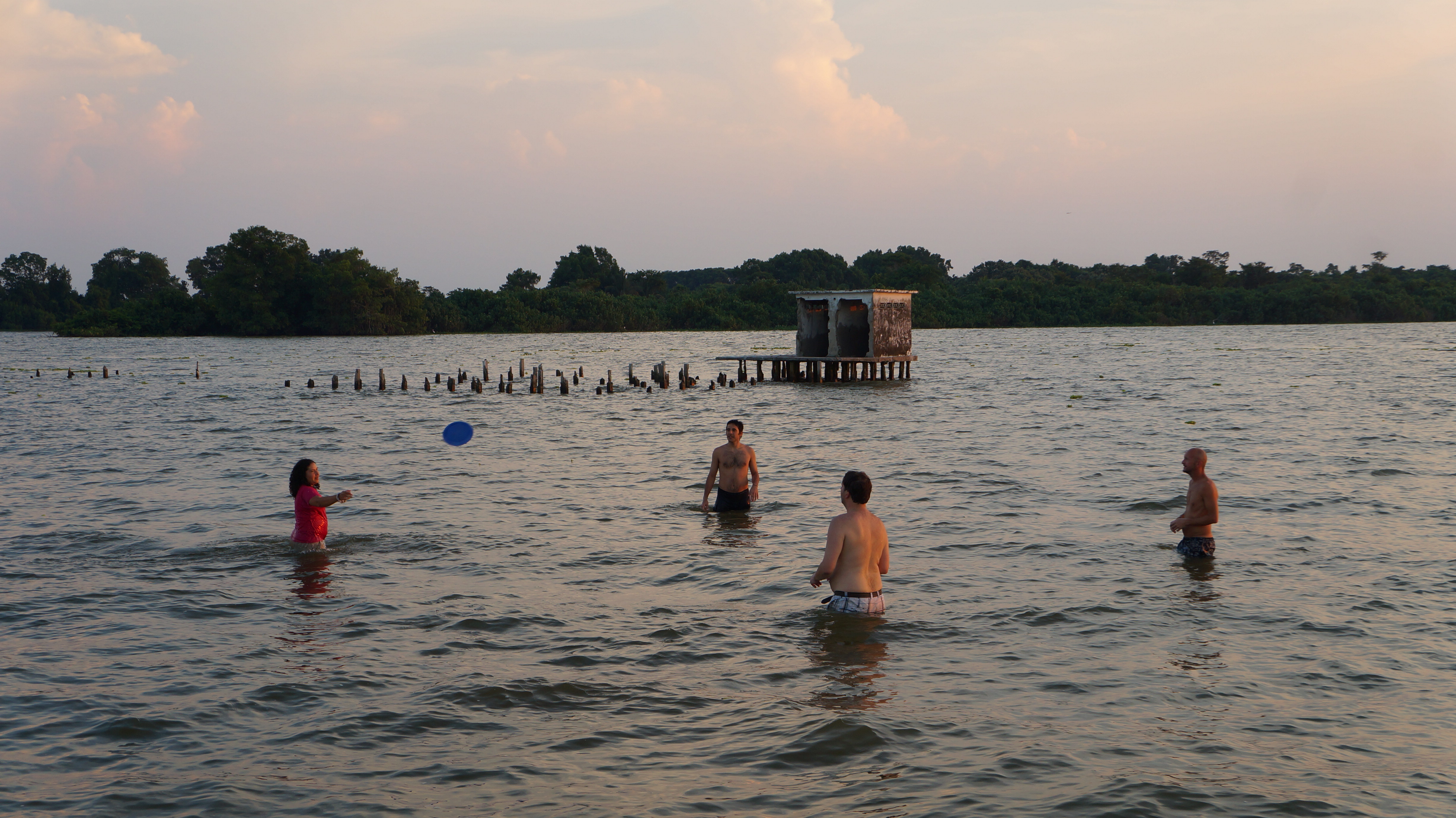 The heat in the lowlands was intense and there was no breeze. The best way to cool down was to change into our swimwear and take a dip in the lake. Much to our surprise the water around the edge only came up to our waist, although towards the centre it can reach 60 metres deep in places. We used a plastic dinner plate and enjoyed a game of Frisbee!