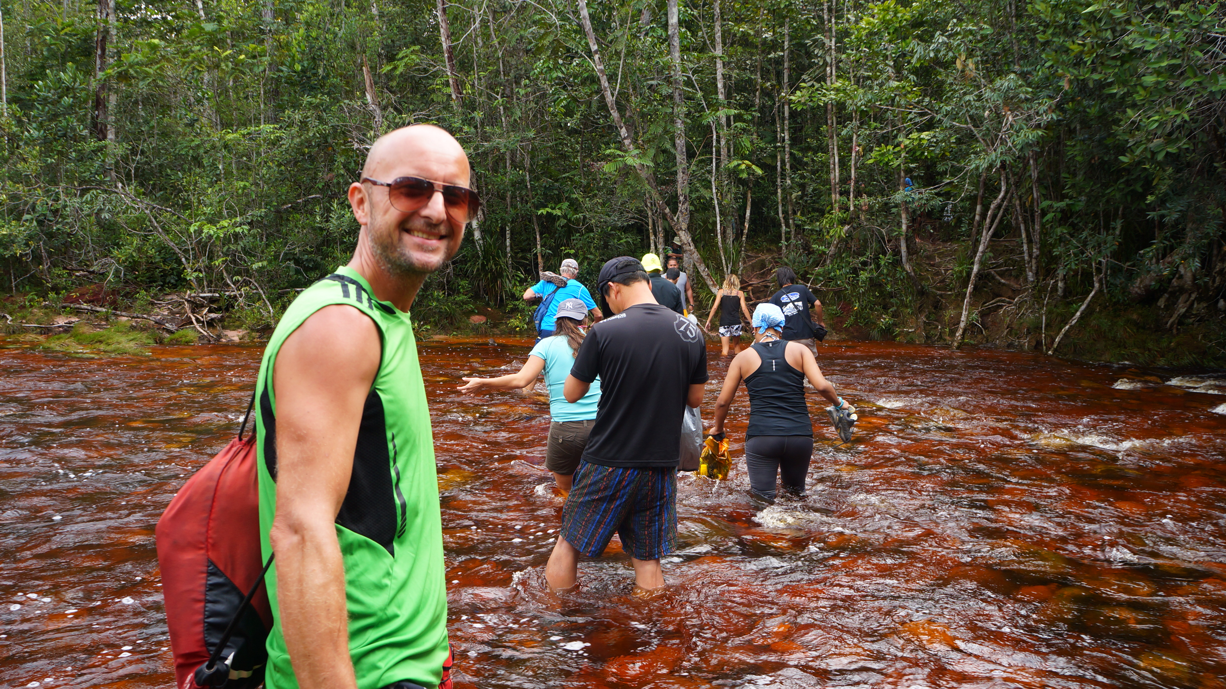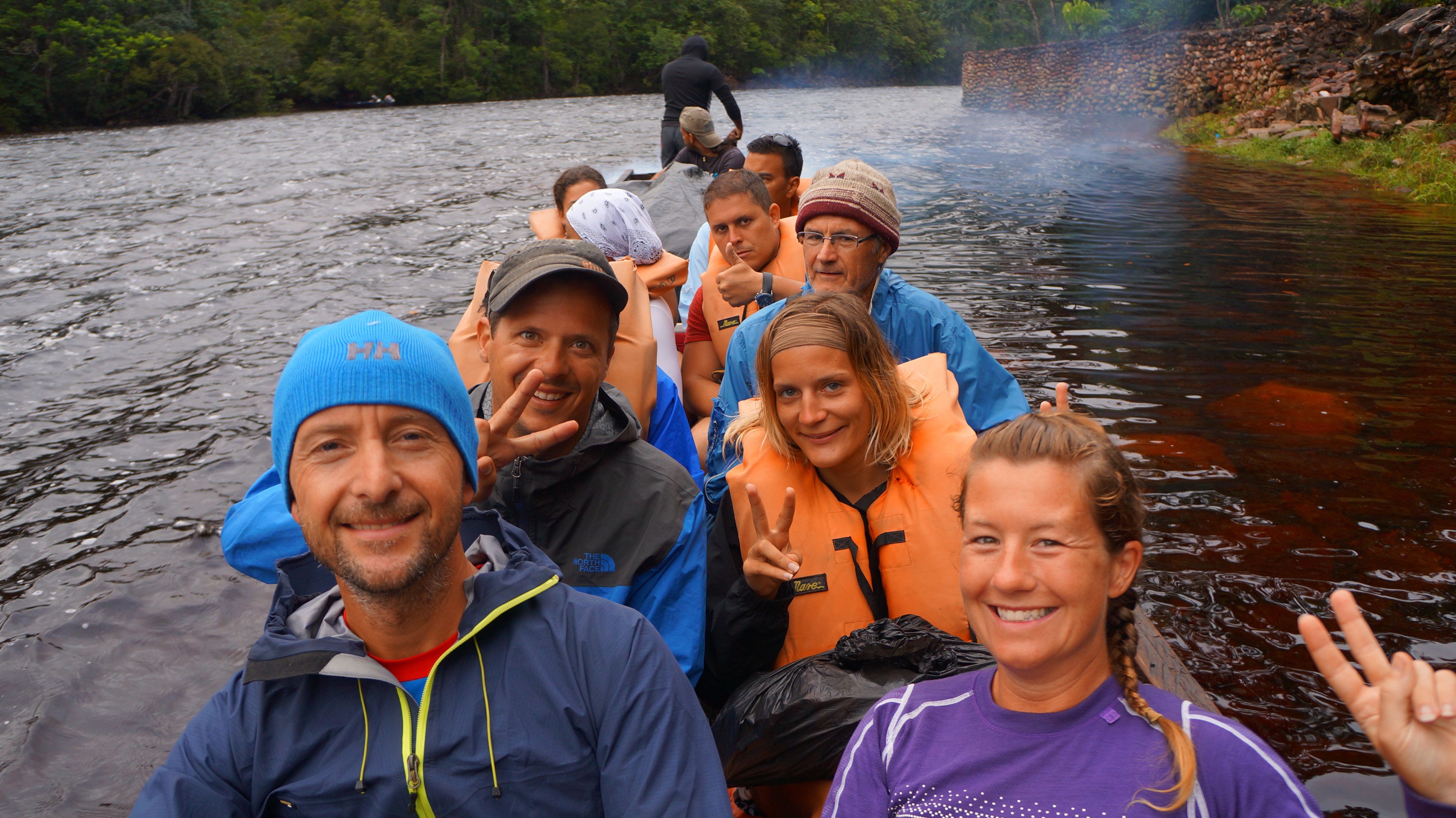 We were all very excited as we stepped off the plane at Canaima’s tiny airfield literally in the middle of no-where. Groups were collected by guides and led on foot to lodges. The thatched lodges had large open-sided dining areas with long tables and benches for communal dining. The bedrooms were set around small gardens filled with tropical looking plants and although the double rooms were undeniably basic, they offered more comfort that we’d expected including en-suite bathrooms with toilet paper, fully functioning ceiling fans and spotlessly clean bedding. However, they didn’t want to offer us that luxury too soon and following lunch at the lodge, we headed to the river to catch our boat.