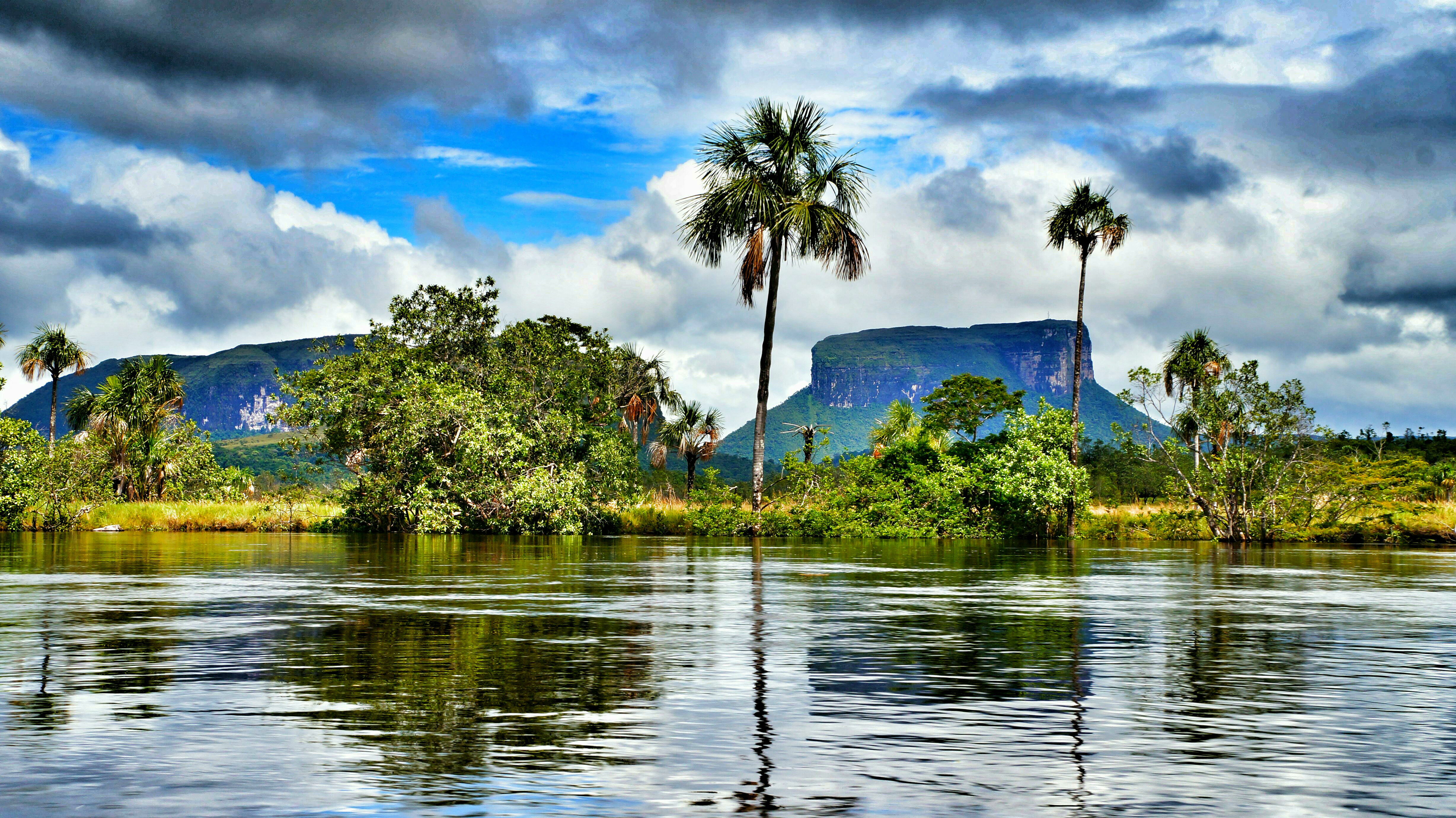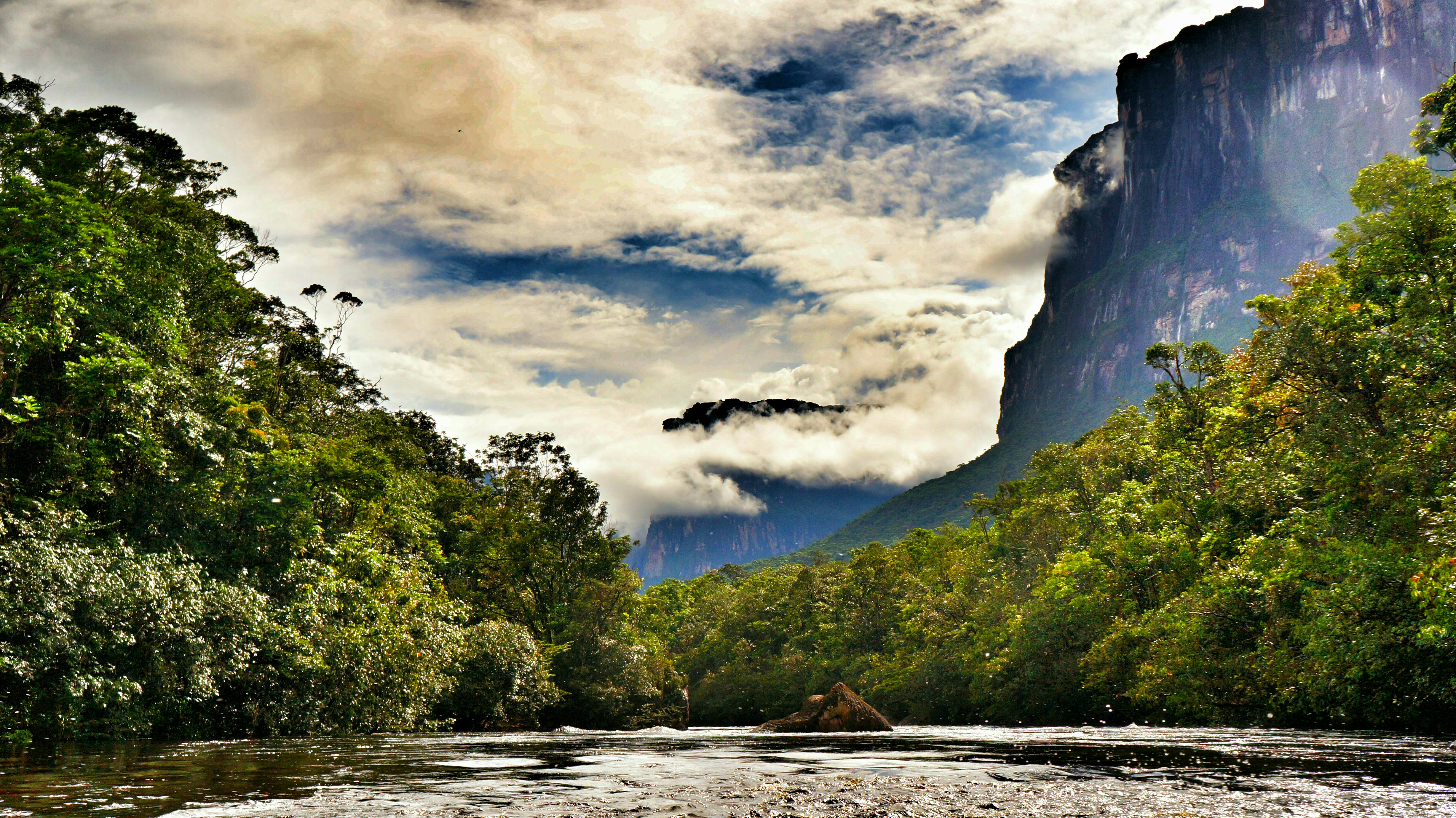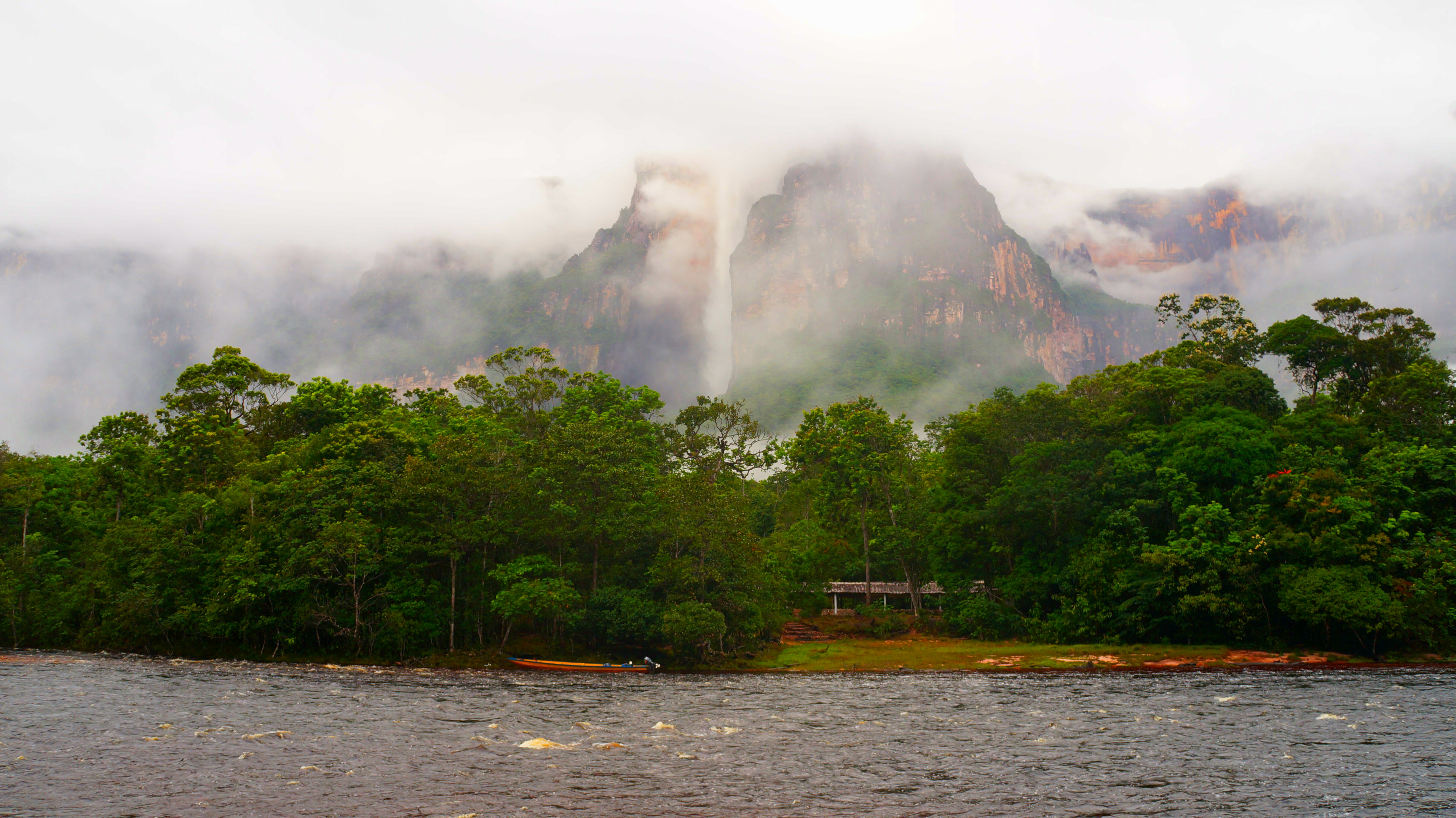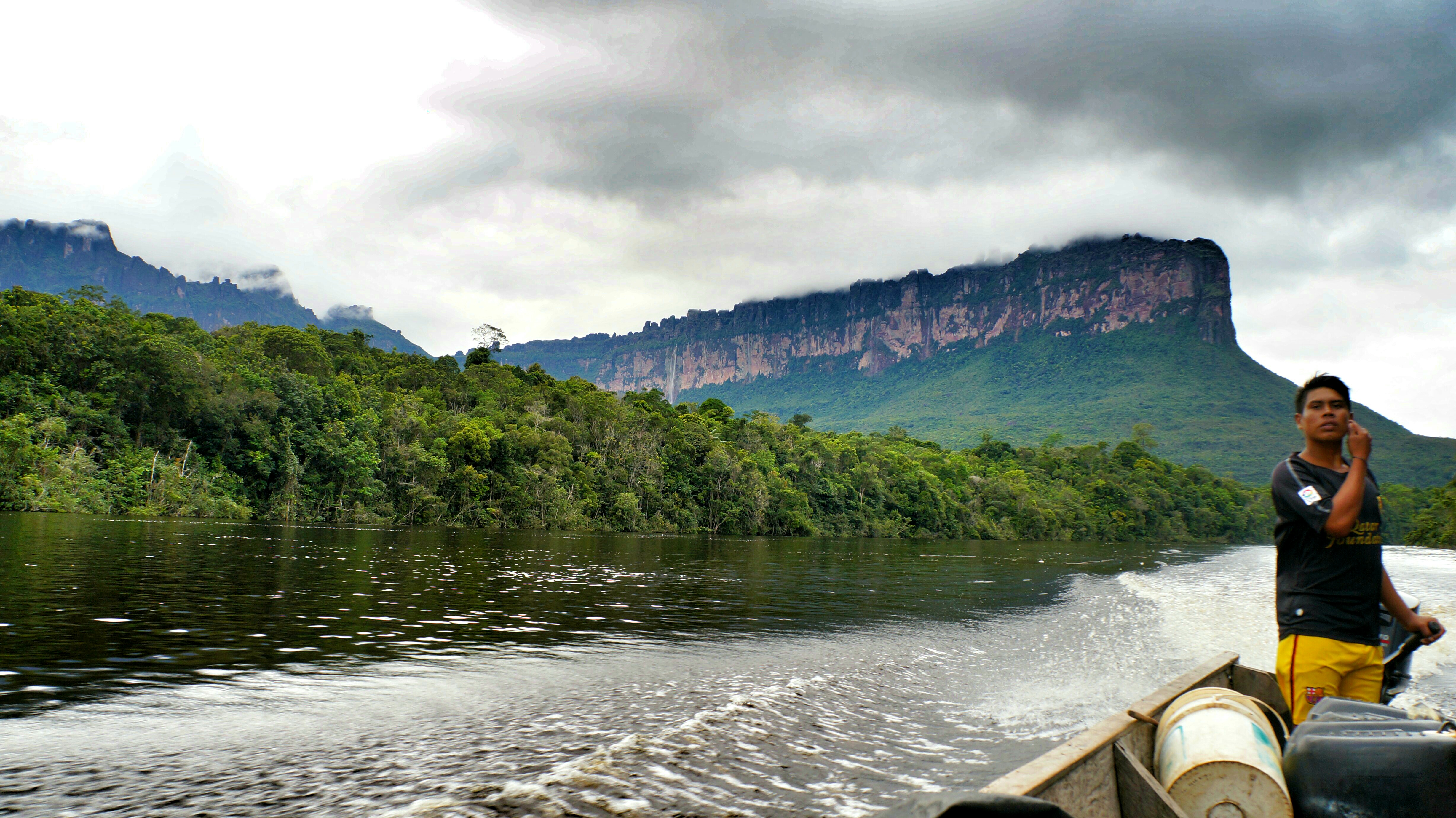 The river journey is like travelling into a world that time forgot. The scenery effortlessly shifts between lush jungle filled with exotic looking birds and monkeys to monolithic table mountains, their summits shrouded in clouds and waterfalls flowing freely from them.
